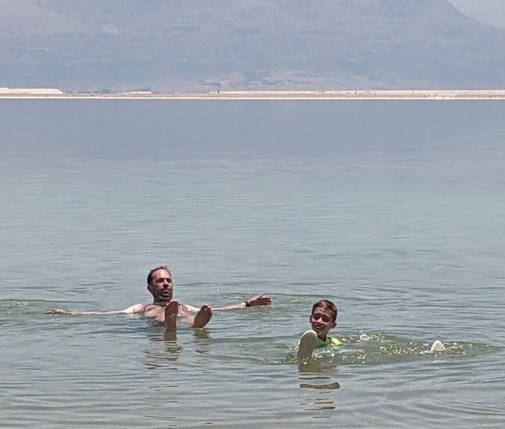 First of all, the dead sea is evaporating and they say within 30 years it will be gone. We even saw a land bridge where you could cross from Jordan to Israel via the dead sea. So everything was very very hot. It was only 100 degrees (i say only because i think it got 20 degrees hotter the following week) but the sand was too hot to walk on bare foot. The dead sea water felt like it was boiling. I’ve never gone in such hot water before. The salt also seemed to be way more concentrated because my kids and I could only stand it for a few minutes before running out for the showers to get the salt off us. My husband, however, somehow was unbothered by the salt and stayed in for nearly an hour.