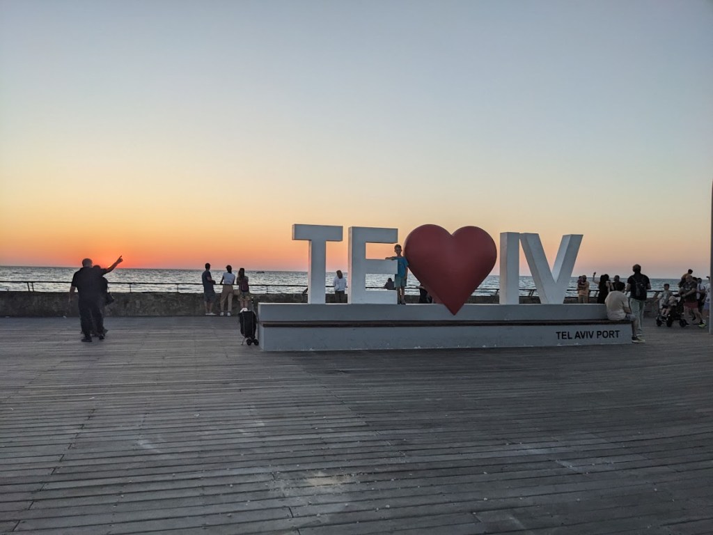- Port Tel Aviv: We ended the day with a trip with our Jerusalem friends to Tel Aviv Port where we took pictures next to the Tel Aviv sign, played in the giant sand box, ran around the docks, and had a dinner at a dock-side fish restaurant (that strangely smelled like cleaning supplies and that made it hard to enjoy the food).
